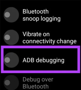 2) سپس به Developer رفته و گزینه‌های ADB Debug و Debug Over WiFi را فعال کنید.